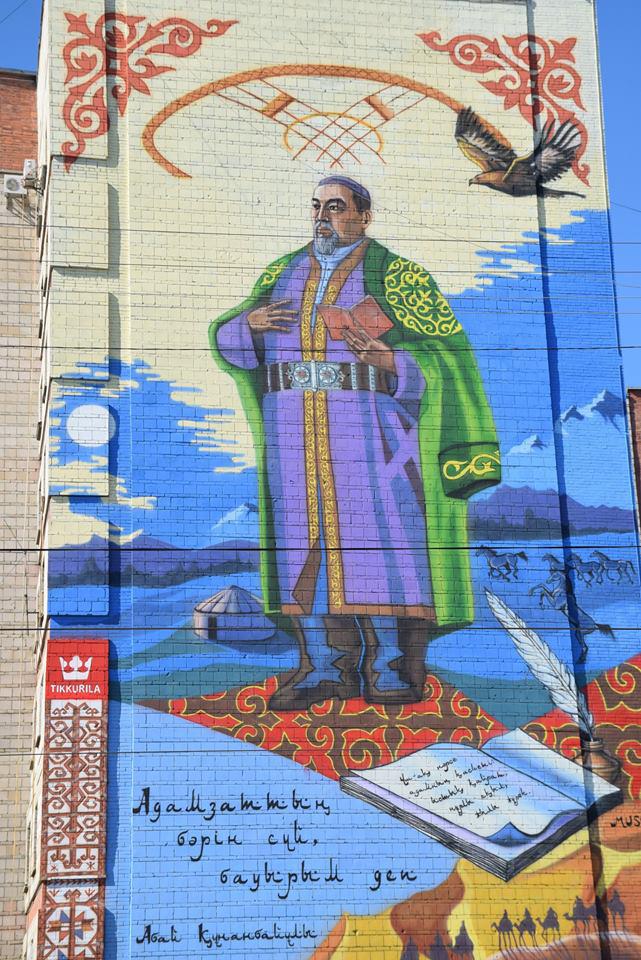 «Нашего земляка, известного на весь мир мудреца и поэта Абая Кунанбаева изобразили на стене девятиэтажки – дома №1 на проспекте, носящем его имя», — говорится в сообщении на странице акимата в Facebook.