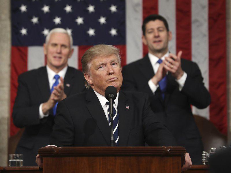 «Прошел год с момента, когда я впервые взошел на эту трибуну, чтобы говорить от имени американского народа», — начал свою речь Трамп.