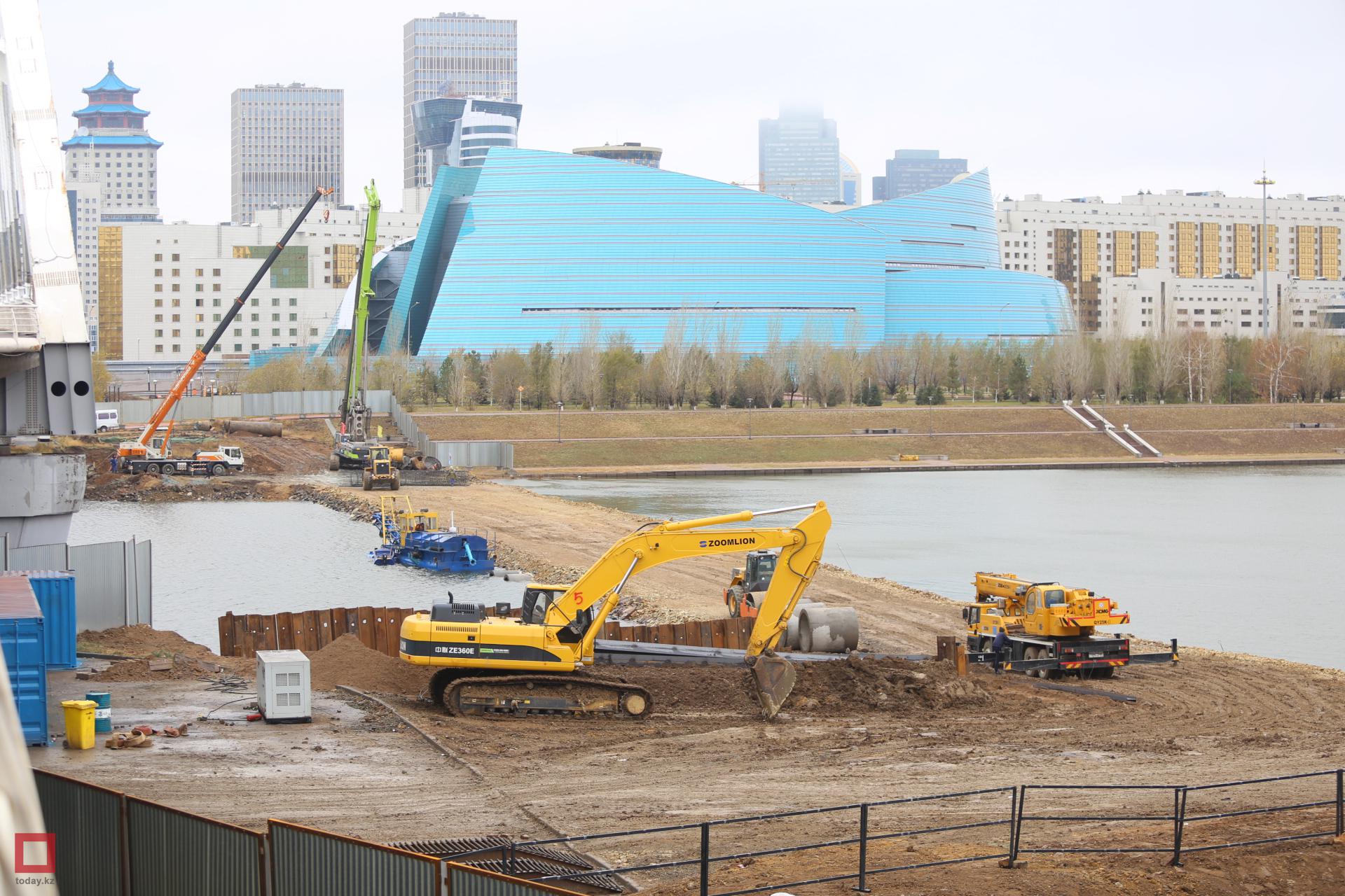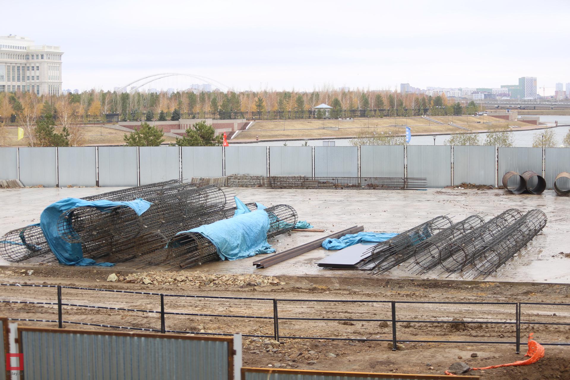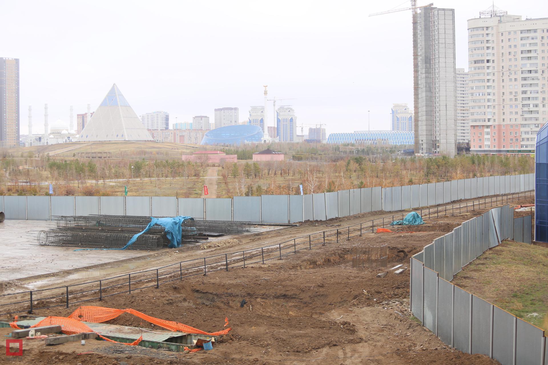 Мы посетили три строительных участка на пути будущей линии. Первый — в районе стадиона «Астана Арена». 20 октября работа была не слишком интенсивной — мы заметили только нескольких китайских рабочих. Языковой барьер, к сожалению, не позволил нам интересно побеседовать — строители не знали ни русского, ни английского языка.