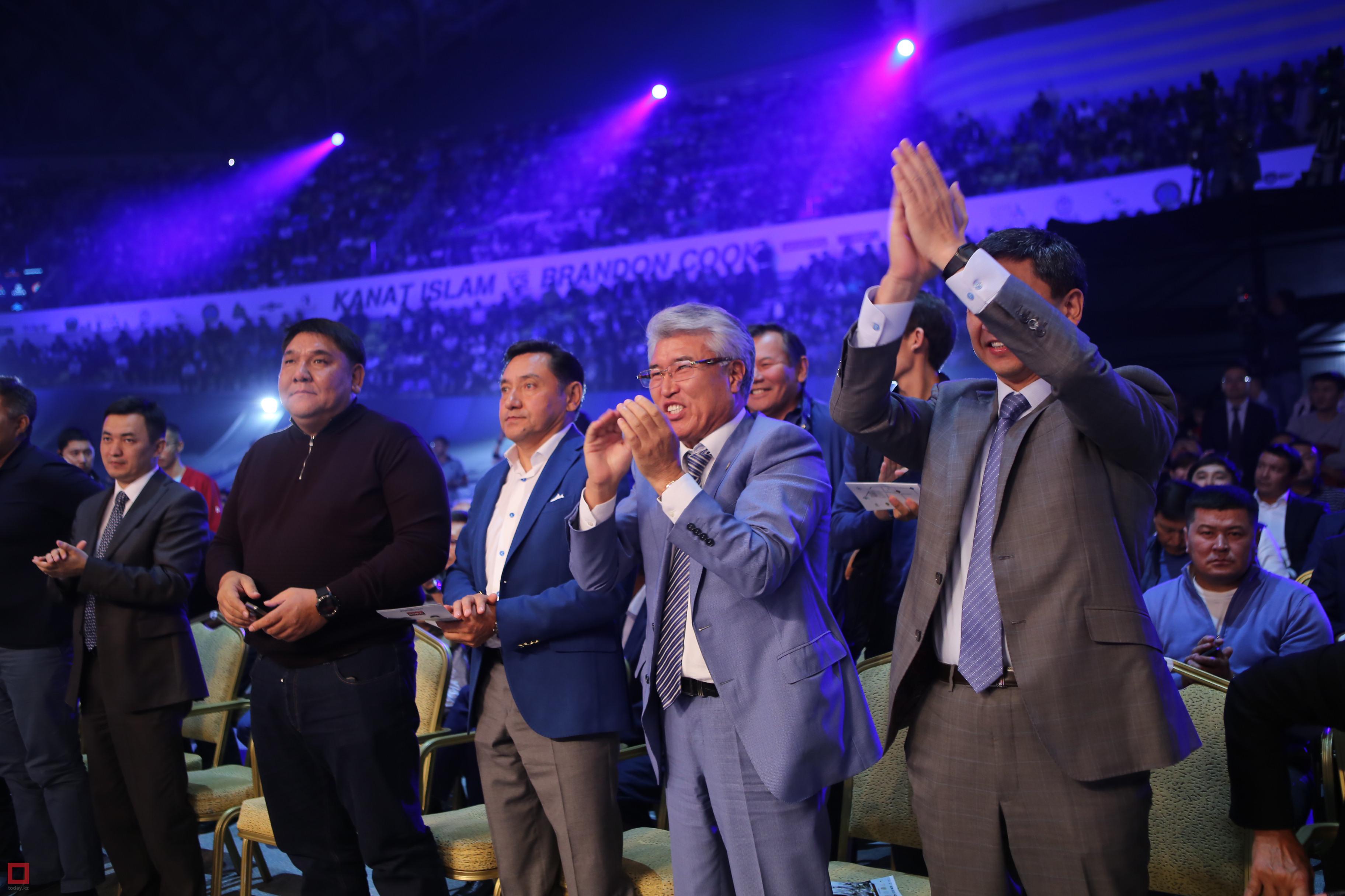Открывал вечер бокса министр культуры и спорта РК Арыстанбек Мухамедиулы. На протяжении всех боев глава ведомства активно поддерживал казахстанских атлетов.