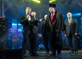 Как сказал ректор НИУ МГСУ Андрей Волков, Учёный совет вуза принял решение о присвоении господину Ставицкому звания Почётного доктора за многолетнюю добросовестную профессиональную деятельность, особые заслуги в содействии развитию науки и образования университета.
