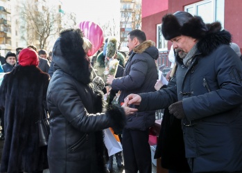 Михаил Мень, Глеб Никитин и глава банка «Российский капитал» Михаил Кузовлев осмотрели построенные дома на улице Генерала Штеменко, корпуса 10, 11, 14 и вручили ключи новосёлам.