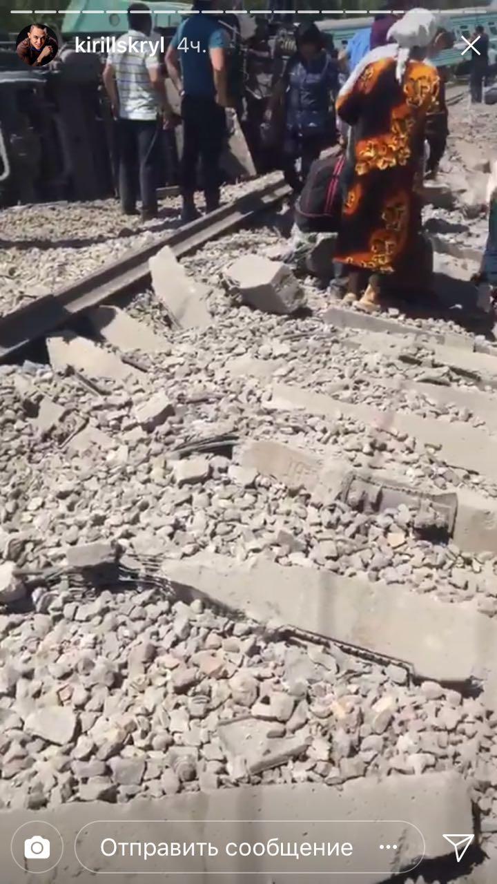 «Начало трясти, потом поезд сошел с рельсов, его положило на бок. Получилось два вагона легли на бок, я ехал в 12-м вагоне, он как раз отцепился от основного состава и мы упали в правый бок, следом еще один упал, а третий вагон  искривился. Вагон, который был за нами его даже смяло. Перевернулись мы считай на бок. Некоторые мужчины начали раздвигать двери купе, чтобы вытащить людей, разбивали окна вагона. Некоторые понизу, по коридору пробрались и выбрались», – поведал пассажир поезда Кирилл Скрыль.