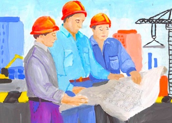 Автором одного из этих рисунков является Элина Шугушхова. Она изобразила трёх строителей на фоне возводимых знаний и башенного крана, которые внимательно изучают план строящегося дома. И сопроводила свою работу интересным рассказом, который наглядно показывает, как сильно участие в конкурсе может влиять на выбор детьми своей стези в будущем.