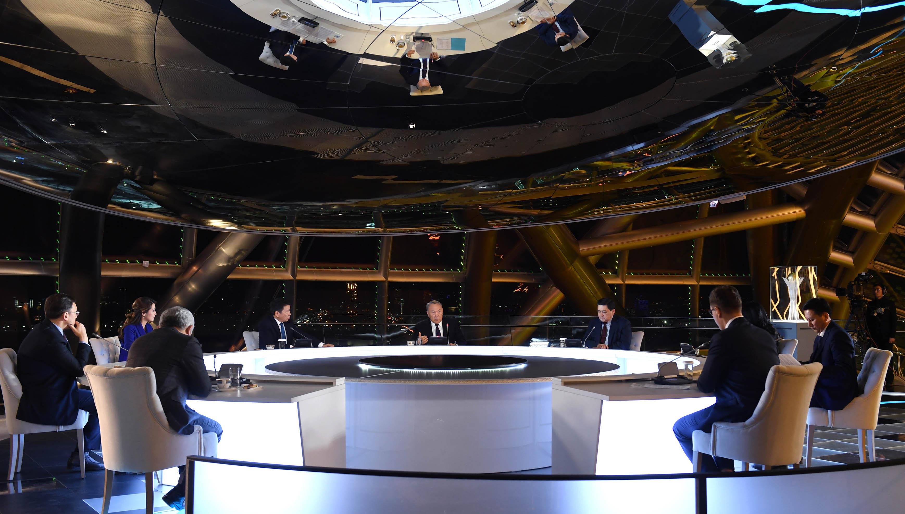 Беседа шла о специализированной выставке ЭКСПО-2017, ее эффектах на экономику страны. Также обсуждались вопросы о трудовой миграции, внедрении принципов «зеленой экономики» и реализации программы «Цифровой Казахстан».