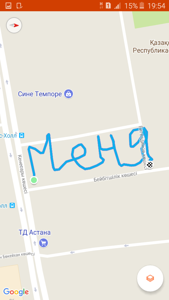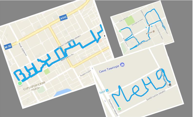 «К примеру, здание суда мешало прорисовать букву «Х», а Дворец спорта «Жастар» создал сложности для буквы «Д». Поэтому некоторые буквы получились неровными. Скриншоты с маршрутом были вмонтированы в поздравительное видео. Самое главное — задумка получилась, и любимая высоко ее оценила», — рассказал парень.