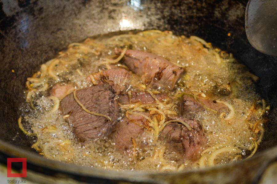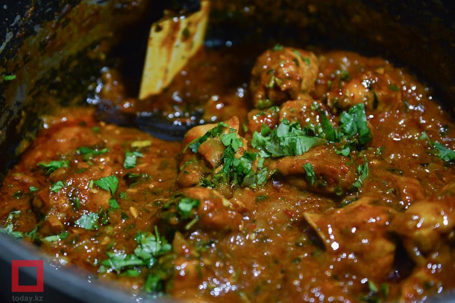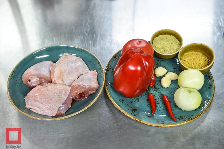 «Особенность: курицу сначала нужно обжарить в сухой сковороде. Чтобы мясо не пригорало, его нужно постоянно размешивать. Лук нужно протушить вместе с курицей, чтобы он не был сырым», – отметил Дос.
