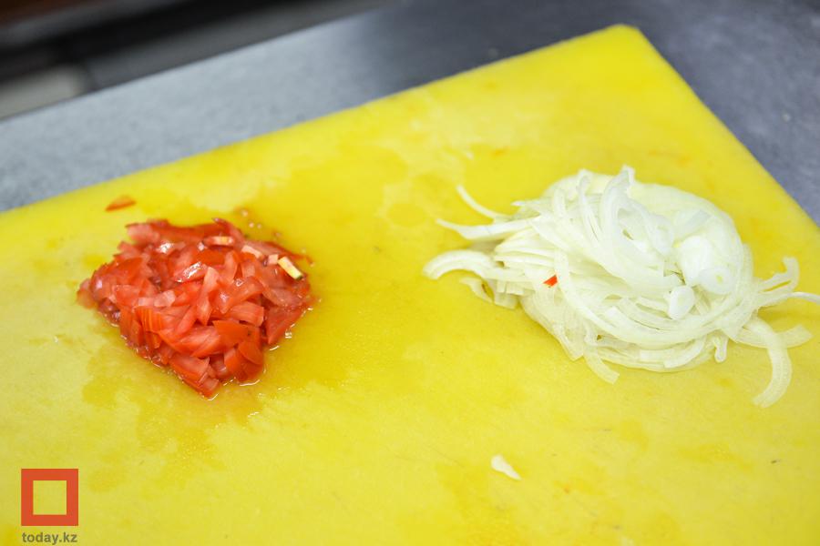 «Теперь добавим томатную пасту. Чуть позже – помидоры. После того как блюдо возьмет нужный цвет, добавляют специи. Время приготовления – 40-45 минут», – сказал шеф-повар.
