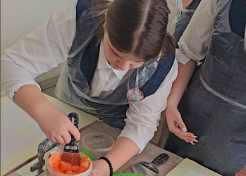 - занятие по штукатурным работам – на нём школьники могли попробовать себя в работе с декоративной штукатуркой под руководством преподавателя ПКАС Виктории Федоренко.