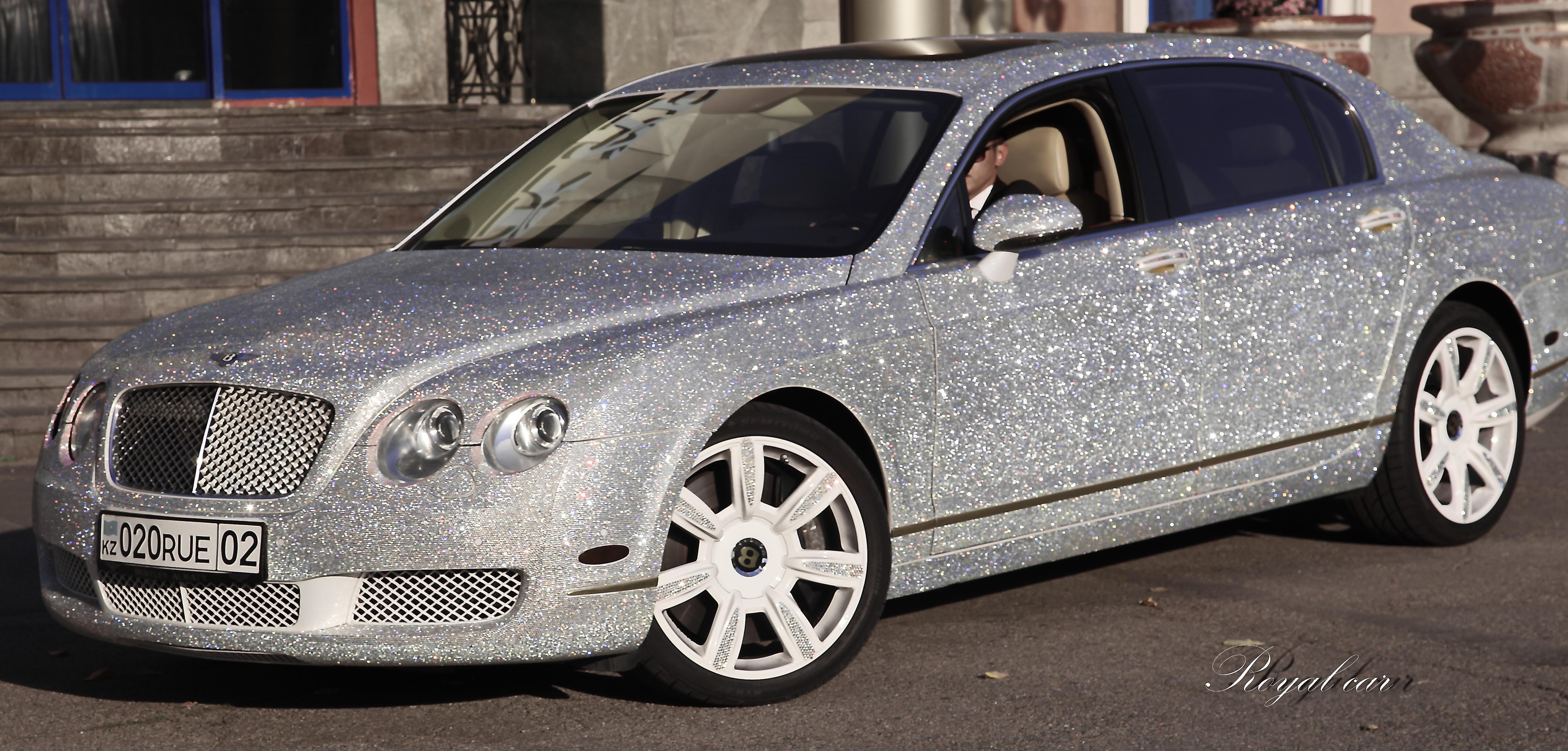 Было выставлено на продажу и другое элитное авто из Алматы — Bentley Continental Flying Spur, также обклеенное миллионом кристаллов Swarovski. За машину его владелица Елизавета Ахриева просит 150 тысяч долларов.