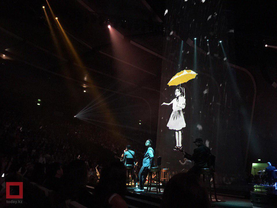 После рукоплесканий зала, Топурия поинтересовалась у публики, понравился ли этот элемент шоу. На что основатель группы Байгали Серкебаев ответил, что «астанчане привыкли и не к таким дождям и снегу».