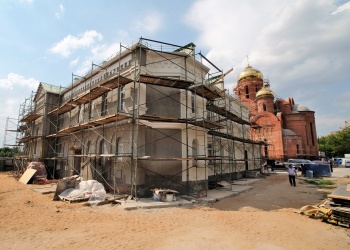 Как рассказал представитель генподрядной организации Андрей Гусаров, монолитные работы и кирпичная кладка на храме завершены, главный купол установлен, увенчалась куполом и колокольня. Ведутся отделочные работы по фасадам внутри храма. Они закончатся к концу года.