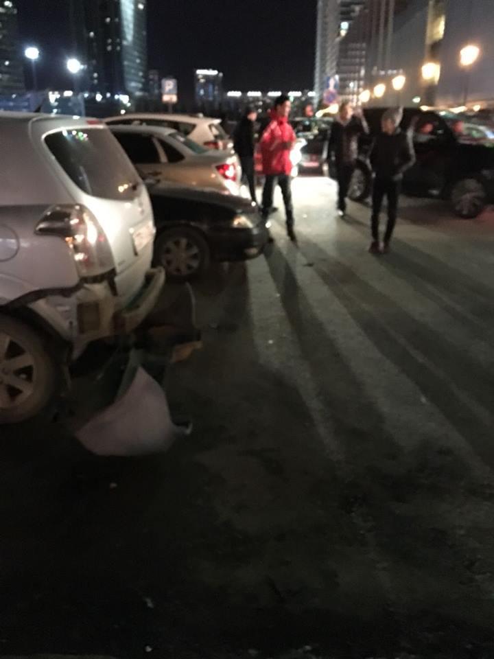 «Водитель, разметав пешеходов по брусчатке, не остановился и продолжил движение по улице Сауран в сторону улицы Сыганак, где задел еще одну машину. Парень, который вел пострадавшую Камри, по его словам, заметил, что виновник аварии после столкновения продолжил по инерции ехать в сторону тротуара, где находится остановка. Он выбежал из машины, догнал нарушителя, открыл дверь и надавил на педаль тормоза. Возможно, он предотвратил наезд на других пешеходов. Настоящий герой. «Жал на педаль газа, был в шоке и дрожал», — так описал ситуацию с водителем парень. Тот, когда я подошел ближе, сидел на земле возле машины и вел себя как-то странно», — пишет Раимханов.